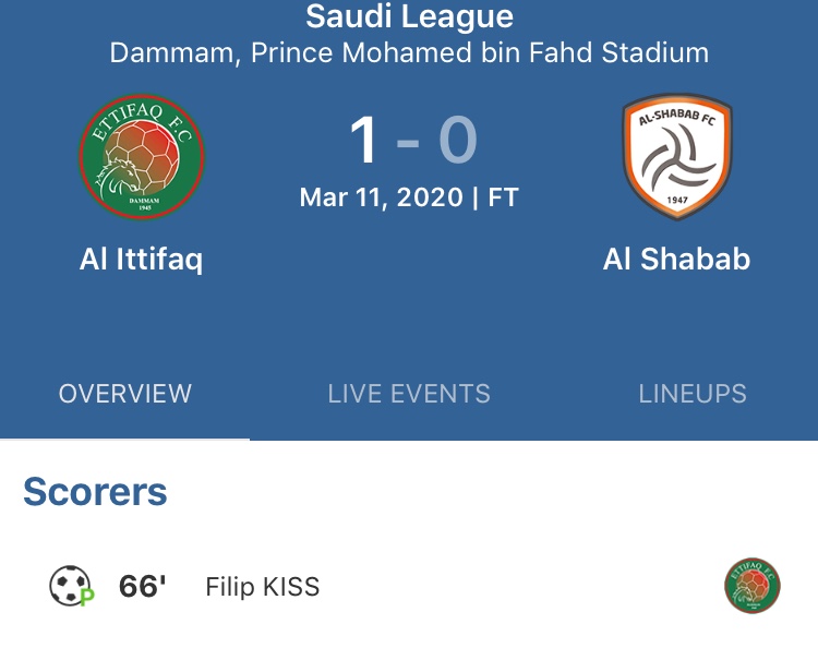 الاتفاق 1 × 0 الشباب