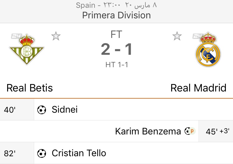 ريال بيتيس 2 × 1 ريال مدريد